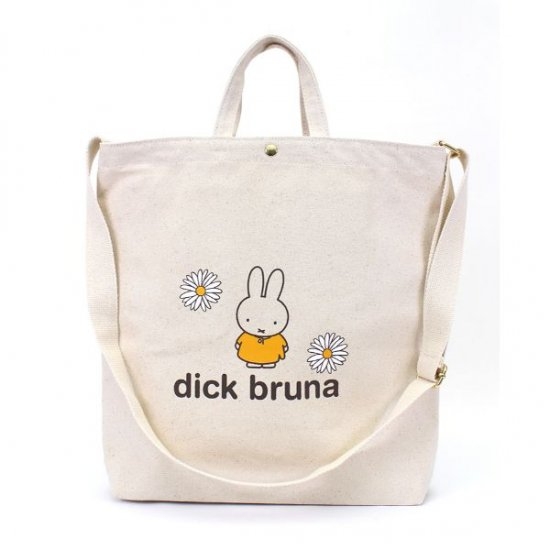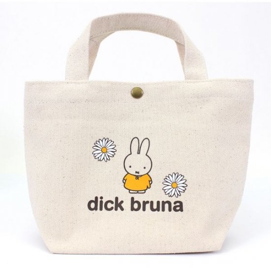 マーガレットのお花と黄色いお洋服のミッフィーがプリントされた、トートバッグです。