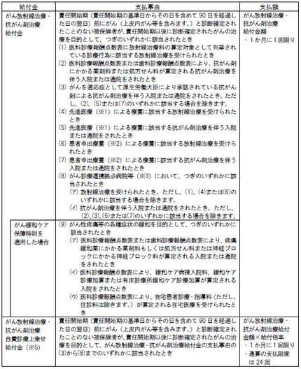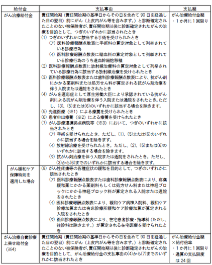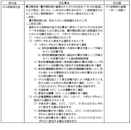 (2)がん緩和ケア保障特則を適用した場合には、がん性疼痛等の各種症状の緩和を目的として所定の緩和ケアを受けられたときもがん治療給付金またはがん放射線治療・抗がん剤治療給付金のお支払いの対象とします。