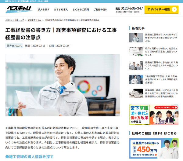 4.建設業界で働きたい人、キャリアアップを目指す人に役立つ「建設業界コラム」を掲載