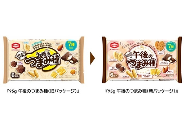 亀田製菓株式会社(本社:新潟県新潟市、代表取締役社長 COO:髙木 政紀)は、午後のおやつタイムにぴったりなミックス米菓『95g 午後のつまみ種』(以下:『午後のつまみ種』)を、9月下旬より順次リニューアルします。