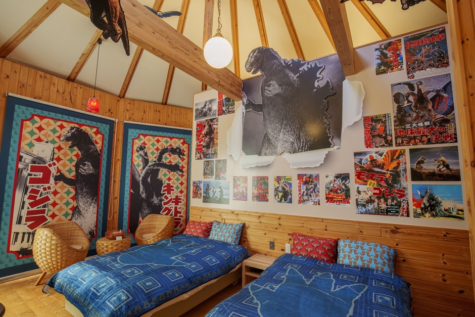 「GRAND CHARIOT 北斗七星135°」の一棟を、日本を代表する特撮映画「ゴジラ」をテーマに装飾。“昭和レトロ”をモチーフに、同作品の世界観と昭和時代が再現された空間を存分に楽しむことができる