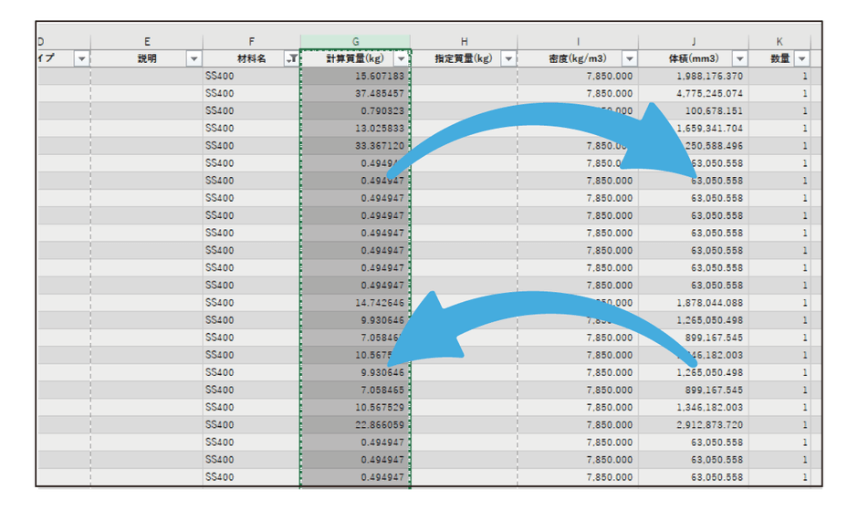 部品表の書式作成時の列の切り取り/入れ替え