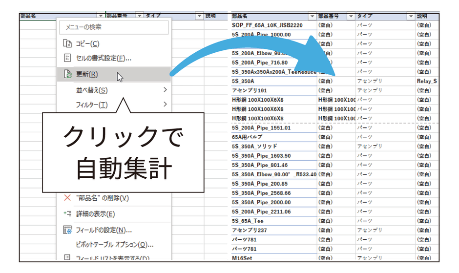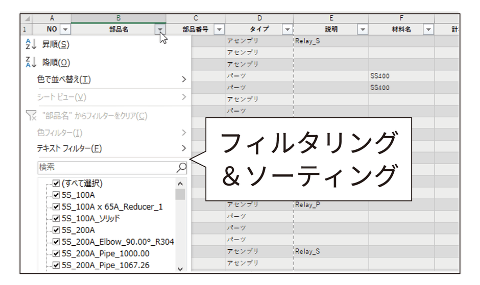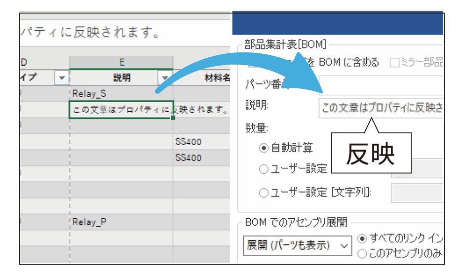 Excelと連携し、BOM集計とプロパティ編集を直感的にスピーディーに行えます。