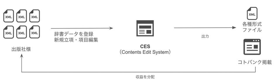 コトバンクは、「世界中のありとあらゆるコトバを収録していく」をミッションに、発行元が確かな136辞書・事典の約273万語(2022年11月現在)を収録したウェブ百科事典です。 C-POTでは、出版の世界で急速に進むデジタル化に対応するため、出版社の保有するコンテンツを一元管理するためのデータベース化や、辞書・事典等の更新が必要な構造化データの編集などを、Webブラウザで利用可能にする編集システム「CES(Contents Edit System)」を提供しており、現在は小学館の辞書・事典データの管理に活用されております。
