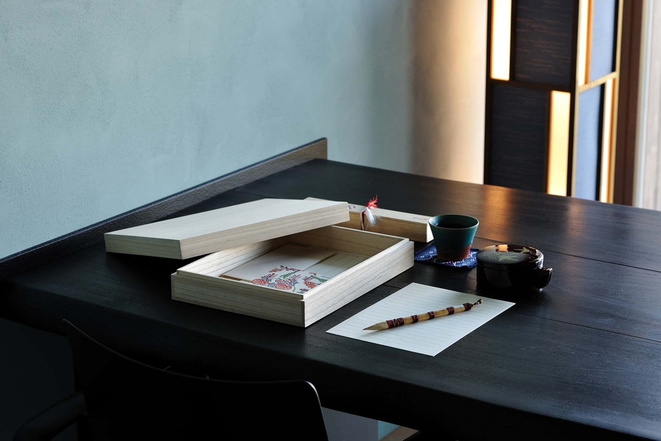 冊封使が琉球の文化や自然に触れて、優雅な暮らしを楽しんでいたことから、星のや沖縄でも同様の滞在が叶うようサポートします。滞在中に参加できる「庭めぐり」は、敷地内の庭をスタッフと散策するアクティビティです。植物の紹介だけではなく、その植物にまつわる文化や歴史の話を交えて案内します。また、冊封使が家族や友人のことを思って体験記を残していたことから、星のや沖縄でも滞在の思い出をつづるための文箱を用意します。琉球王国の時代から使われるアダンという植物から作られた筆と、月桃で作られた風情ある便箋を使って、滞在の思い出を残せます。ゆっくりと流れる時間の中で、琉球の文化や自然に触れながら滞在を楽しめます。