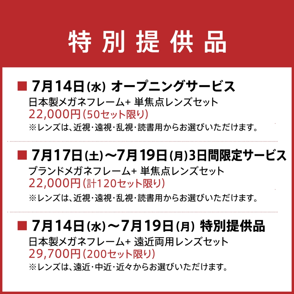 特別提供品はメガネフレーム+レンズセット22,000円からご用意!