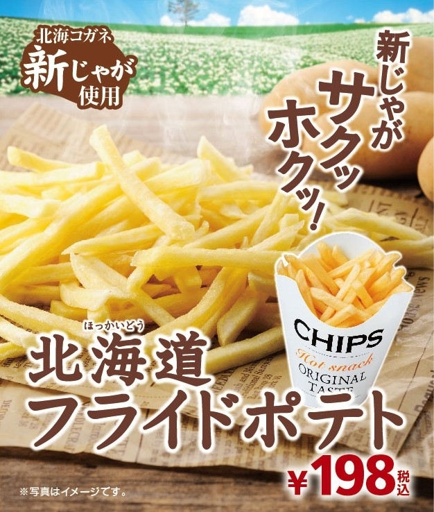 2014年10月30日 15:30 ミニストップ株式会社(本部:千葉県千葉市 代表取締役社長:宮下 直行、以下:ミニストップ)は、今秋北海道で収穫されたばかりの新じゃが(品種:北海こがね)を使用した「北海道フライドポテト」(税込:198円)を、2014年11月1日(土)より順次※国内のミニストップ店舗(2014年9月末現在:2,153店)にて発売いたします。