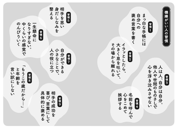 本書には、今日から誰にでもできる、機嫌よく生きるための小さな習慣・ヒントが詰まっている。