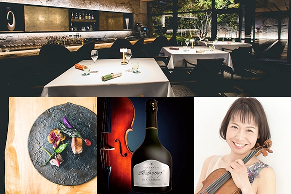 このイベントに華をそえるのは、ハイデルベルグ市立交響楽団に16年間在籍され、現在国内で活躍のヴァイオリニスト北島里枝氏による華麗なるバイオリンソロ演奏。美しい日本庭園を眺める洗練された雰囲気の店内で、特別な一夜限りのディナーをご体験ください。