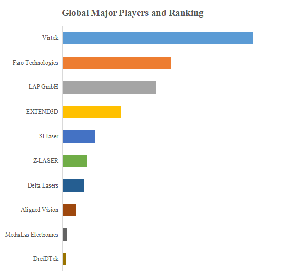 YHResearchのトップ企業研究センターによると、工業用レーザー投影システムの世界的な主要製造業者には、Virtek、Faro Technologies、LAP GmbH、EXTEND3D、Sl-laserなどが含まれている。2023年、世界のトップ3企業は売上の観点から約52.0%の市場シェアを持っていた。