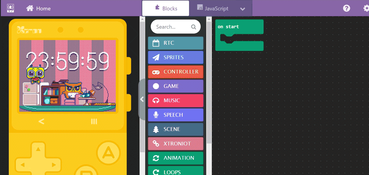 実際のプログラミングはXtron Pro専用の開発プラットフォーム"Xmaker"で行います。やることはガチャガチャとブロックを組み合わせることだけ!子供たちでも感覚的に学習を進められます。