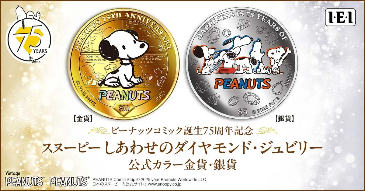 インペリアル・エンタープライズ株式会社(所在地:東京都荒川区、代表取締役社長:原 良郎)は、<ピーナッツ誕生75周年記念 スヌーピー しあわせのダイヤモンド・ジュビリー 公式カラー金貨・銀貨>を、I・E・I オリジナルショップにて販売いたします。