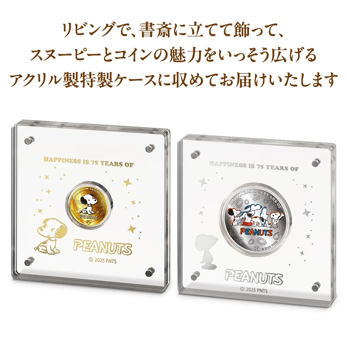 商品名:ピーナッツ75周年記念 スヌーピー しあわせのダイヤモンド・ジュビリー 公式カラー金貨・銀貨