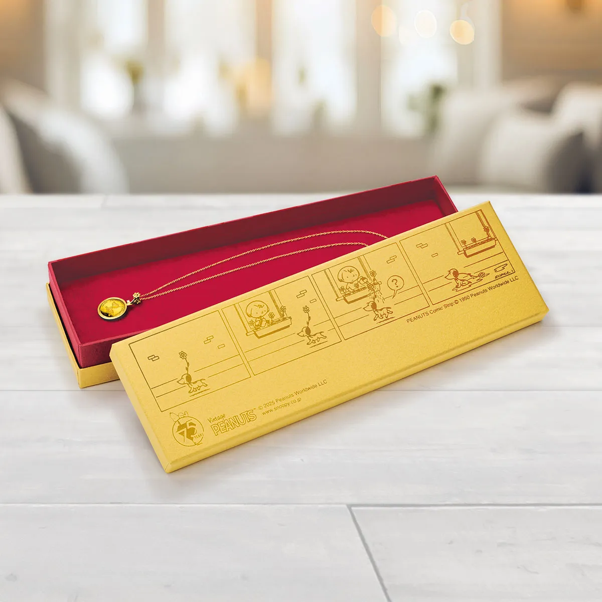 デビュー当時のスヌーピーのコミックが金色で輝く、PEANUTS 75周年記念ボックスに収めてお届けいたしますので、大切な方への贈り物にも最適です。