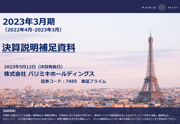 「パリミキ」を展開している株式会社パリミキホールディングス(本社:東京都港区、代表取締役社長:澤田将広)は、ログミー株式会社が提供する、投資家と上場企業との新たな出会いや相互理解を促進し、投資機会を創出するプラットフォーム「logmi IR Live」において、個人投資家向けに決算説明会を開催することをお知らせいたします。