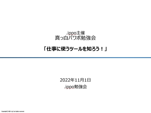 フリーランスや副業の“仕事につながる人脈”を作るための無料オープンコミュニティ「.ippo(ドットいっぽ)」を運営する合同会社KBC(神奈川県川崎市 代表社員 小林慶志郎)が、11月1日にコミュニティ内で『真っ白パワポ勉強会』という勉強会を開催しました。