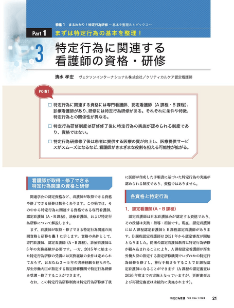特 集 1 :まるわかり!特定行為研修~基本を整理&トピックス~