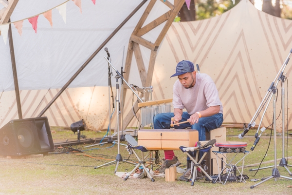 2010年以降、木製スリットドラムを中心に楽曲制作。2015年スノーピーク表参道店オープニングアクト、2019年良品計画主催の竹楽器づくり、世田谷区子ども児童基金助成プログラムで音遊びを実施。2020年以降、ヨガ講師との配信イベントや野外フェスに出演。聴いた人が微笑んだり心ほぐれる音楽を目指している。