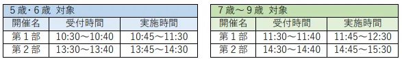 開催時間:下表のとおりです。対象年齢にご注意ください。各部定員25名です。