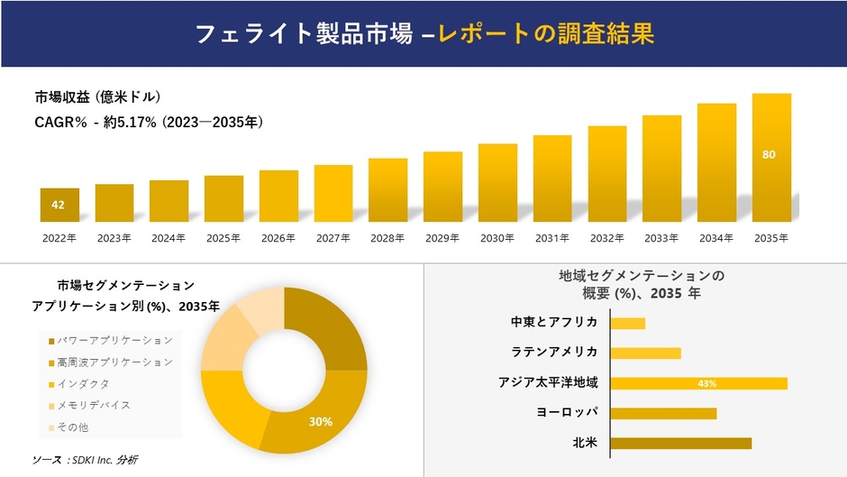 SDKI Inc.(2023年08月29日)は、2023年と2035年の予測期間を対象とした「フェライト製品市場」に関する調査を実施しました。