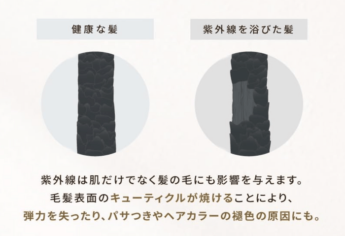 紫外線はキューティクルへダメージを与え、髪のパサつきや、ヘアカラーが褪色する原因にも。NULLフレグランスオイルミストは、乾燥やドライヤーなどの熱だけでなく、紫外線も防ぐことができます。