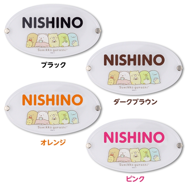 お名前の色を4色から、フォントは5種類からお選び頂けます。すみっコぐらしには、星型、