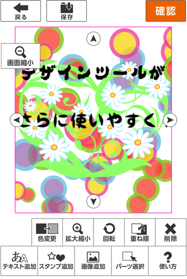 繊細なタッチが苦手な方にも本格的なデザインができるよう、パーツの選択や微調整が非常にやりやすくなっています。老若男女を問わず、だれでもカンタンにTシャツなどへ こだわりのデザインを作成することができます。