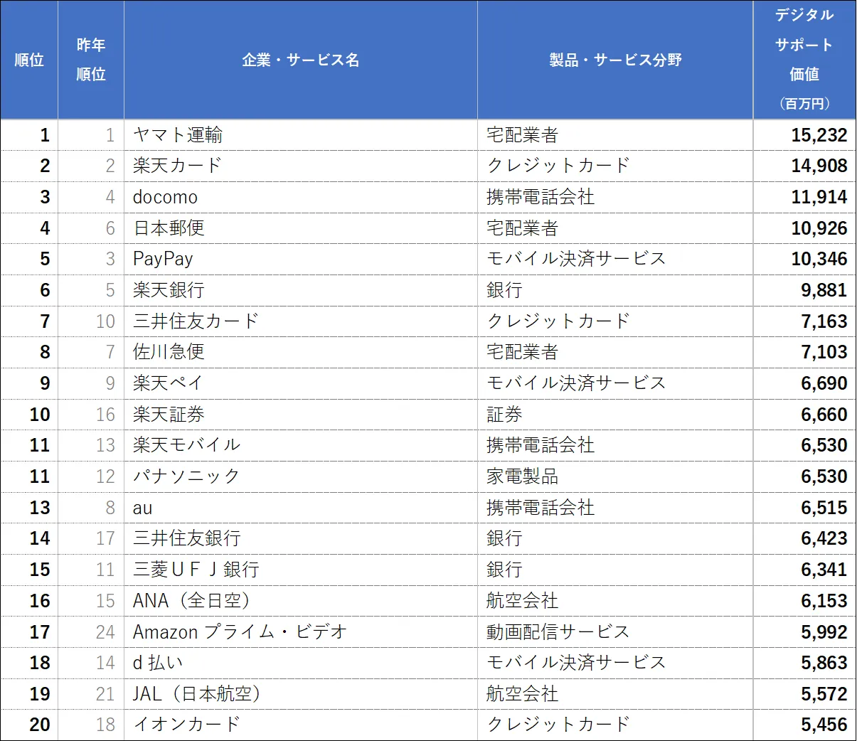 デジタルサポート価値ランキング2025 1位ヤマト運輸の価値換算は152億円