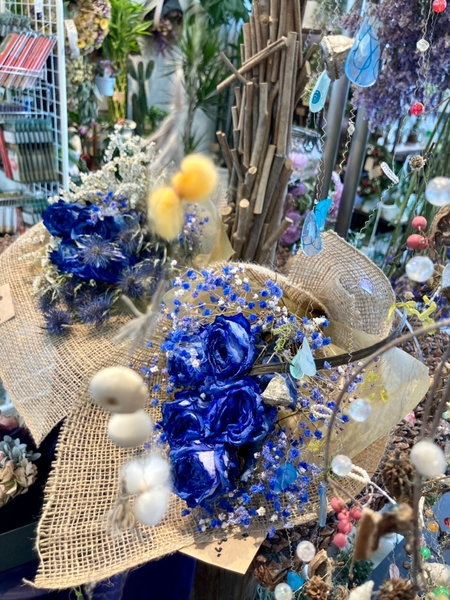 「花まつ」の店頭では、七夕に合わせて、笹や輝く星空をイメージしたかすみ草を束ねた「天の川」ブーケ等を展開しております!
