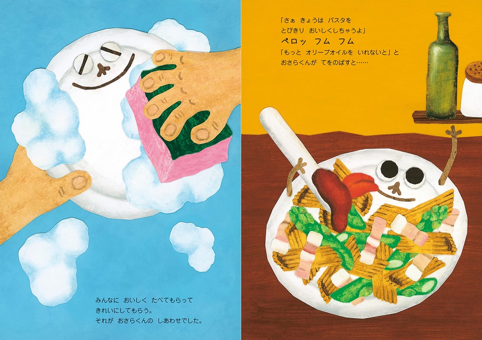 もしもお皿が生きていたらどうする? ハンバーグもエビフライもポテトサラダも、どんな料理もおいしくしちゃう“おさらくん”が主人公の新作絵本『ペロペロ おさらくん』11月19日発売!