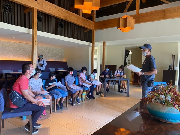 星のや竹富島のスタッフが、職務経験や現在の仕事内容、また、困難も諦めずに乗り越える楽しさを伝え、子どもたちがキャリアについて学ぶことを目的とした授業です。今回は施設管理を担当するスタッフが実際の仕事現場を案内して、エンジニアの仕事を紹介しました。施設見学の後は、仕事のやりがいや困難を乗り越えた経験を話す講話会を実施し、働くことの面白さを子どもたちに伝えました。