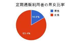 全定期注文1,668,001件の購入者のうち女性が1,134,275人、男性が225,505人、性別無回答が308,221人でした。性別無回答者を除外して比較したところ、16.6%が男性、83.4%が女性となりました。