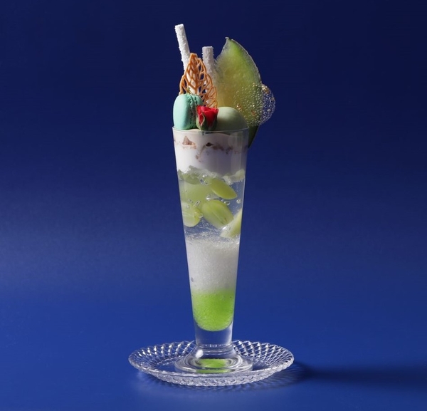 「果物の王様」と言われる果肉が多汁で濃厚な味わい、強い香りが特徴の高級食材“マスクメロン”と「ぶどうの女王」と言われるジューシーで上品な甘みと高貴な香りの“シャインマスカット”をたっぷりと使った贅沢な逸品に。