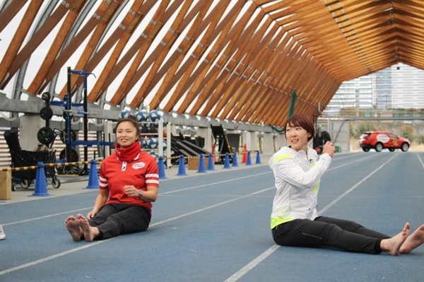 桑井さんは陸上の円盤投げを経験したのちラグビーの世界へ。寺田選手は、陸上選手を引退後、ラグビーに挑戦し再び陸上の世界へ。同郷(北海道)で同級生ということもあり、共に練習をする機会も多かったお二人は、終始息もぴったりで、和やかな雰囲気の中クリニックが行われました。