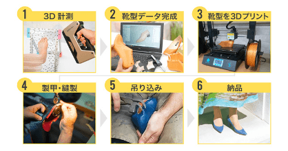 足に合わせた靴型を3Dで正確に作る事ができるので、性別を問わず自分の履きたい靴を作る事ができるため、自分の欲しい靴を作る事ができます。男性のお客様からパンプスのご注文も頂いて、3D技術を使い足に合わせた靴作りで皆様にHappyをお届けしています。オーダーメイド3Dシューズの技術を当社だけに留めること無く、必要な機能を外部に開放してどの会社でもオーダーメイド3Dシューズを製造販売できるB2B2Cのサービスを展開しています。売れないサイズを作る、足に合わない靴を買わざるを得ない無駄を排除して、靴製造を新しい時代に向け進化させています。