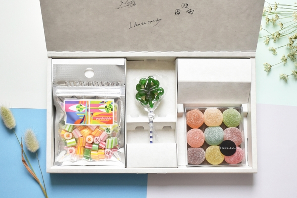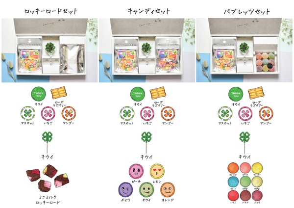 また、キャンディが大好きな方、チョコレートが好きな方、ゼリーが好きな方に合わせてお選びになることができるよう、組合せを変えています。