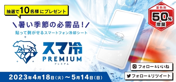人間に対してはもちろんですが、私たちに欠かせないスマホに関しても暑さ対策は必須。これから本番を迎える暑い季節に向け、また今回の「スマ冷え Premium」の発売を記念して、あなたのスマホバッテリーの熱劣化を防ぐ熱冷却シート「スマ冷え Premium」を抽選で10名様にプレゼントいたします。