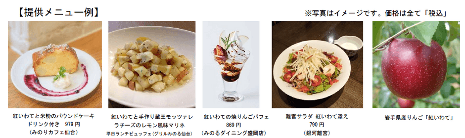 フェアでは、甘酸のバランスに優れた味わいの「紅いわて」をふんだんに使用したオリジナルメニューを提供します。