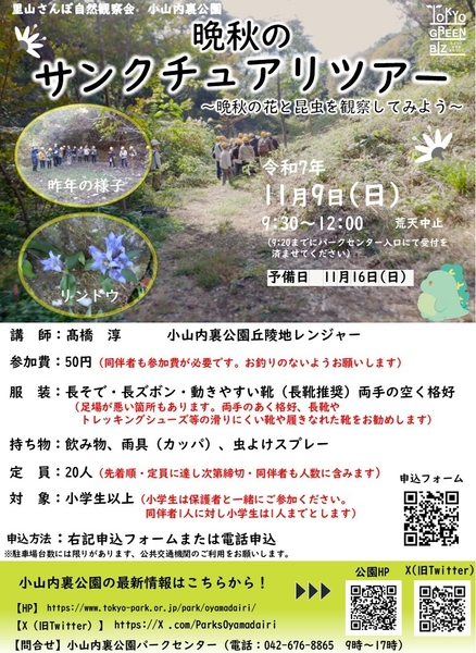 11月9日(日)、小山内裏公園で「サンクチュアリツアー~晩秋の花と昆虫を観察してみよう~」を開催します。