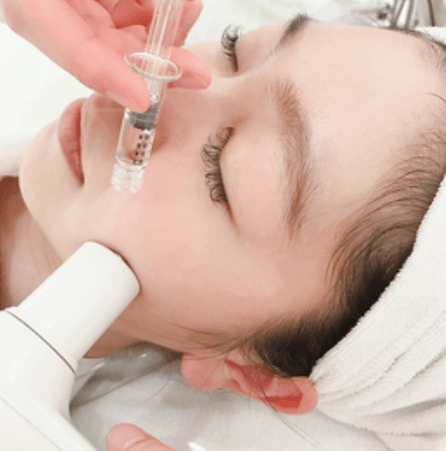 このケアに使用する美容液は、65%の高濃度ヒト肝細胞臍帯血順化培養液です。そして、高濃度美容液を真皮まで届けるためにエモシオンを使い浸透させます。エモンシオンは、特殊な電気パルスを使う方法です。