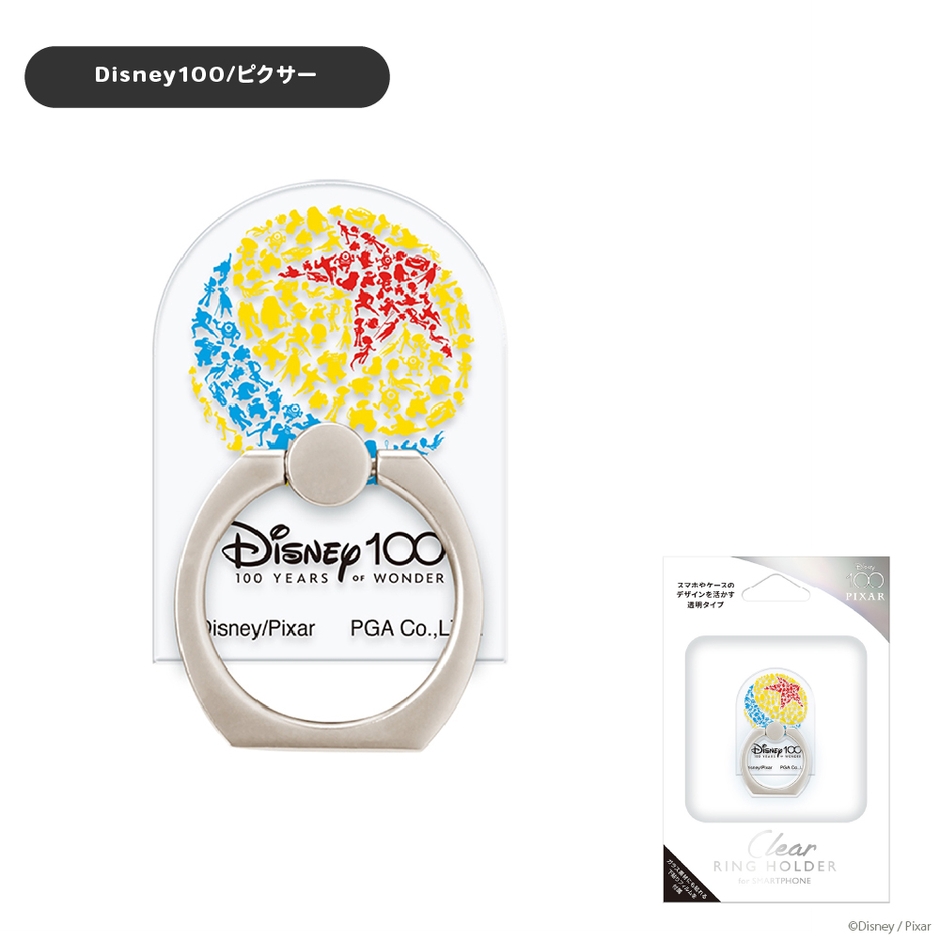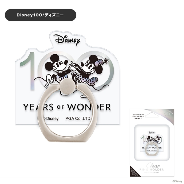 ディズニー100にインスパイアされたデザインのスマートフォン用 クリアリングホルダーです。スマートフォン本体やケースの背面に貼り付け、指を通すことで、端末の持ちやすさがアップし、落下防止の役割も果たしてくれます。360度回転するリングは動画視聴などに便利なスタンドとして使用も可能です。ガラス素材にも貼れる下貼りフィルムが付属されています。
