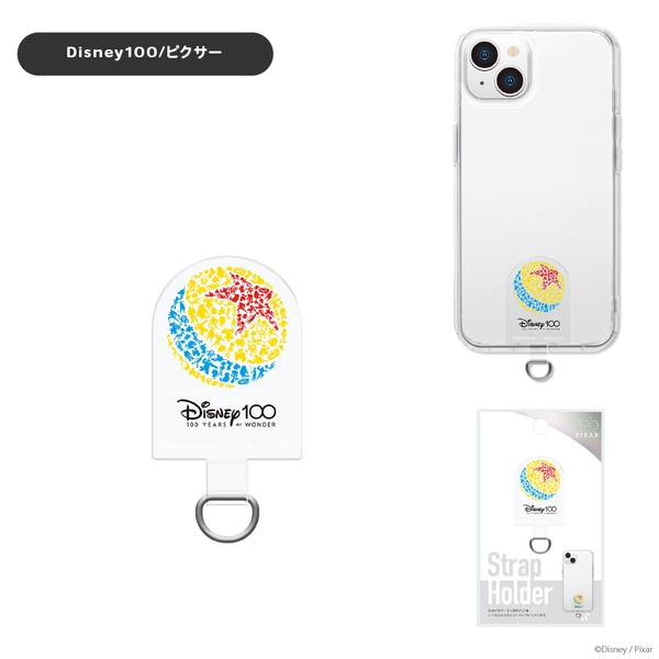 ディズニー100にインスパイアされたデザインのストラップホールのないケースに挟むだけでストラップが付けられるダイカット ストラップホルダーです。端末とケースの間にストラップホルダーを挟み込むだけで、ストラップホールを付加します。(※お手持ちのケースや充電口の形状によってはホルダーが収まらない場合があります。)端末やケースに貼り付けしないので、汚れずいつでも付け外しが可能です。