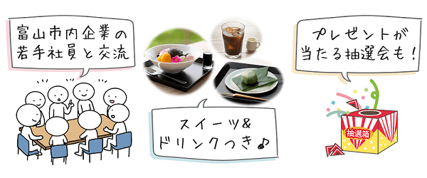 富山市内企業の若手社員とじっくりお話できる交流会など、就活準備にぴったりのイベントです。