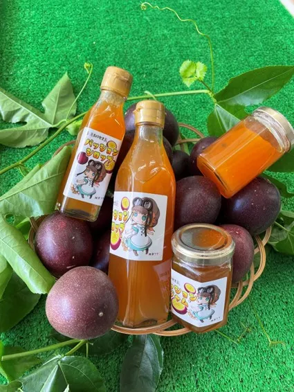 パッションシロップ、盛若(焼酎)、塩辛(甘、中辛、辛口)メダイみりん漬け、島とうがらしオイル漬け など