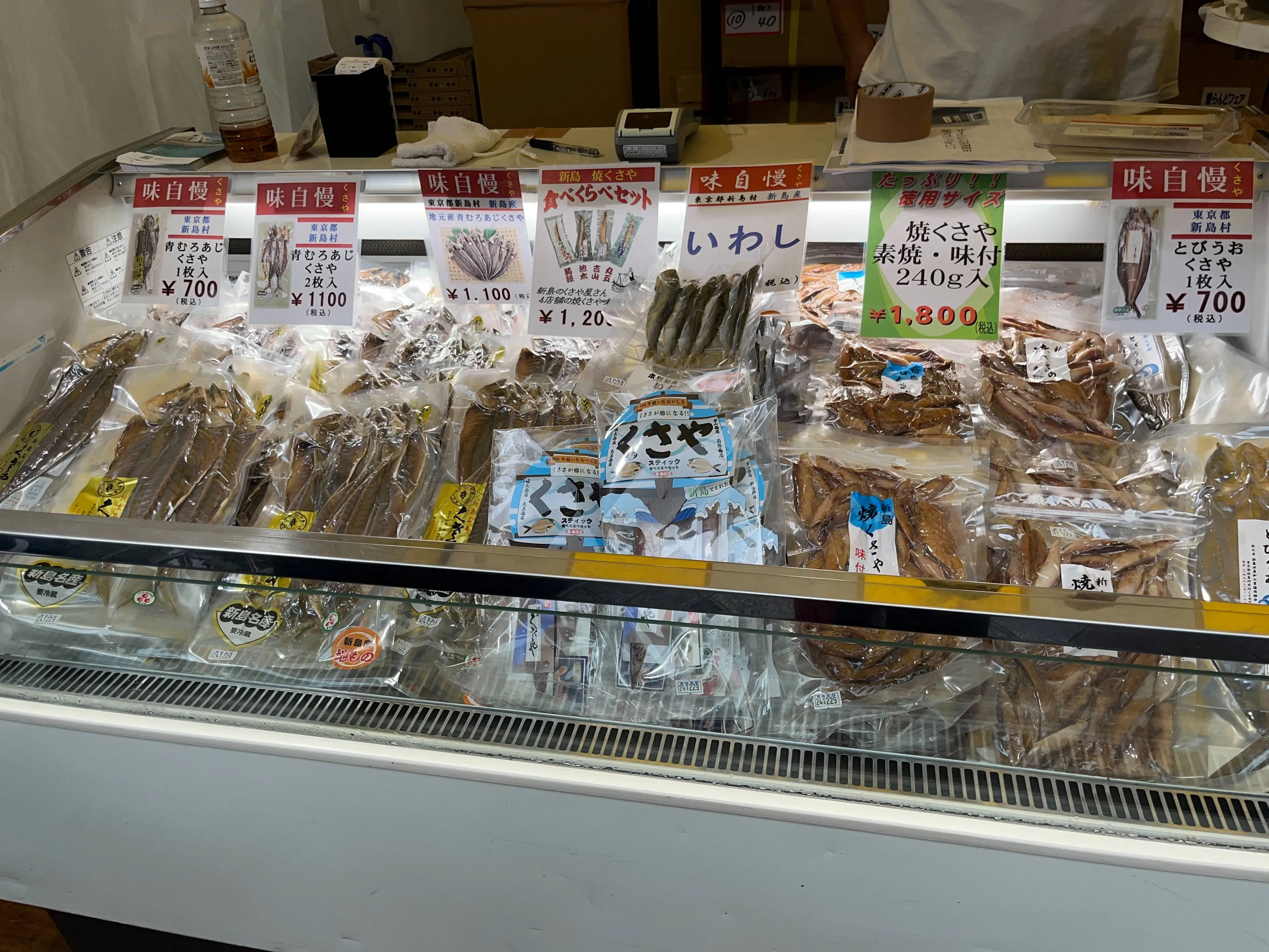とびうお(くさや)、焼くさやスティックセット、磯のり、生とうがらし(青・赤)、あめりか芋ジャム など