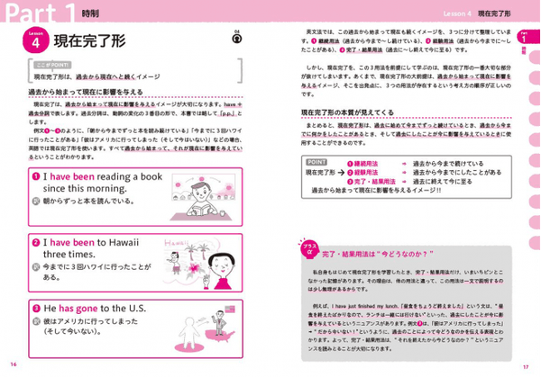 基礎的な内容は各レッスンで紹介して、応用文法はひとことポイントや英文法コラムで紹介。さらに、ネイティブの発音を聞きながら英文を読むことができる「ダウンロード音声」つきです。