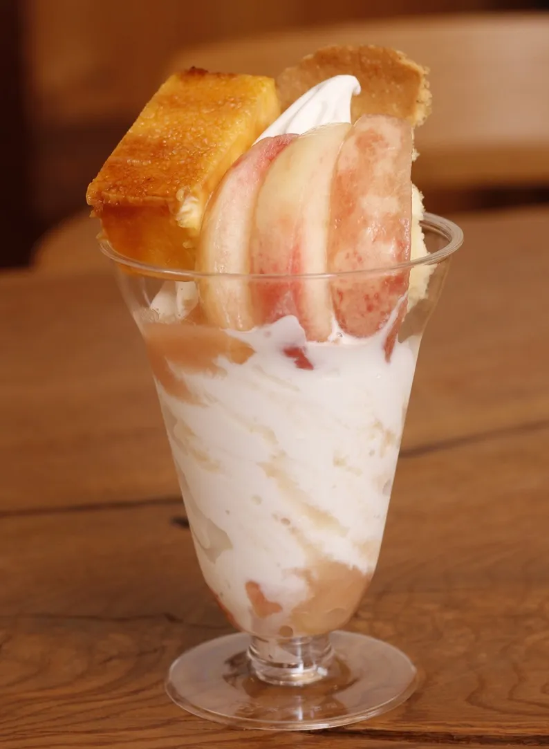 【近鉄本店限定】鹿追町<ミルクのくるみ> とかち桃たっぷりパフェにカタラーナを添えて 1個(各日限定数50)1,485円(第2弾)
