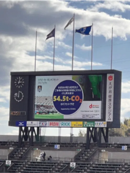 また、試合当日の会場では、来場客の認知度向上を目的に、CO2排出量の速報値の提示や、本取り組みに関するアナウンスとビジョン投影を実施しました。
