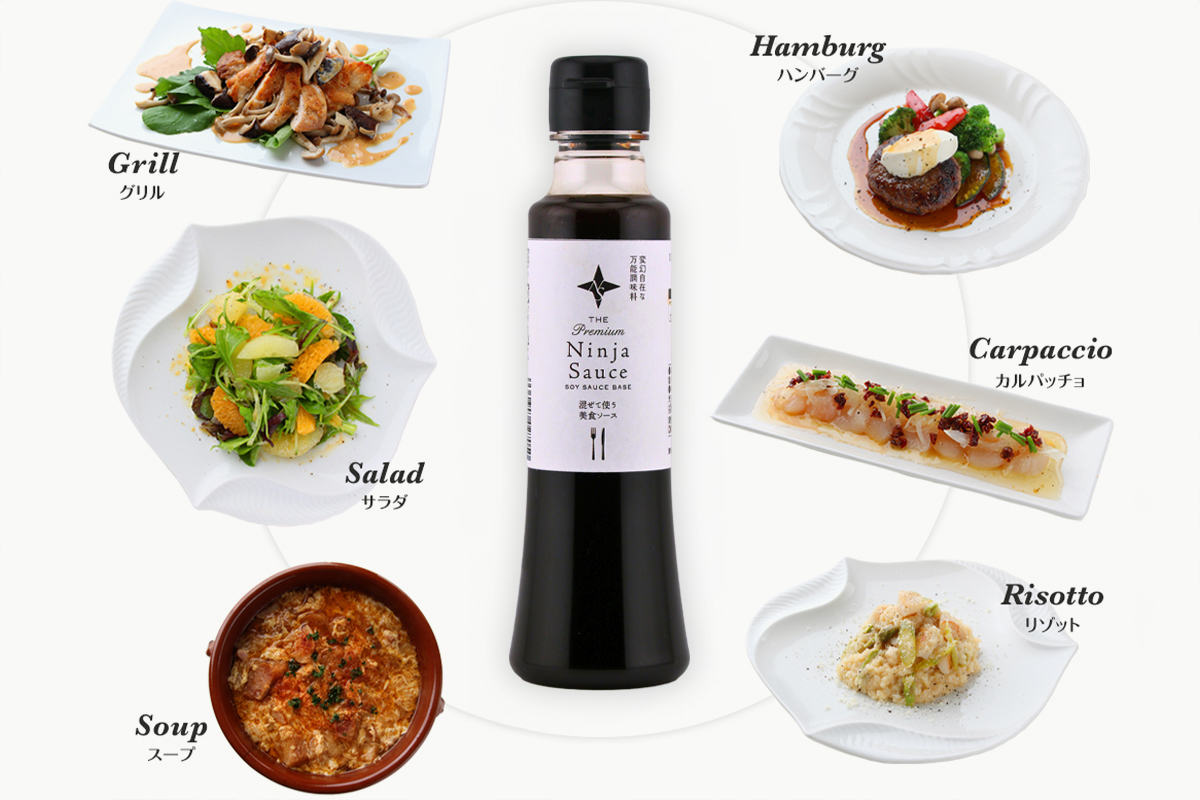 Ninja Sauceは、福井で生まれた醤油ベースの万能調味料です。その特徴的なネーミングと変幻自在の味わいは各種メディアでも取り上げられ、「福井発のご当地調味料」として広く親しまれてきました。