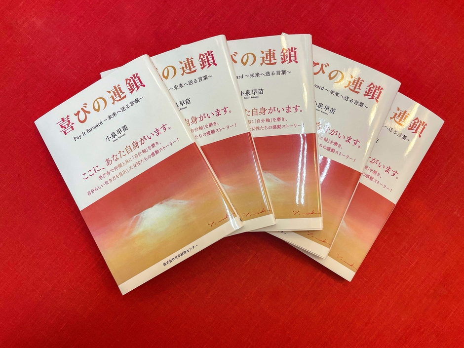 湘南で「喜びを表現する自分軸づくり」のオリジナルメソッドにて、10年まなび場を提供してきた、(株)ダイシングランド代表:小泉早苗が、仲間と共に「自分軸」を磨き、自分らしい生き方を見出した女性たちの感動ストーリー!「喜びの連鎖 Pay it forward未来へ送る言葉」を書き下ろしました。